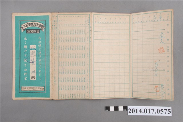 2014.017.0575 保證責任後龍信用購買販賣利用組合給趙其祥大詔奉戴儲金簿