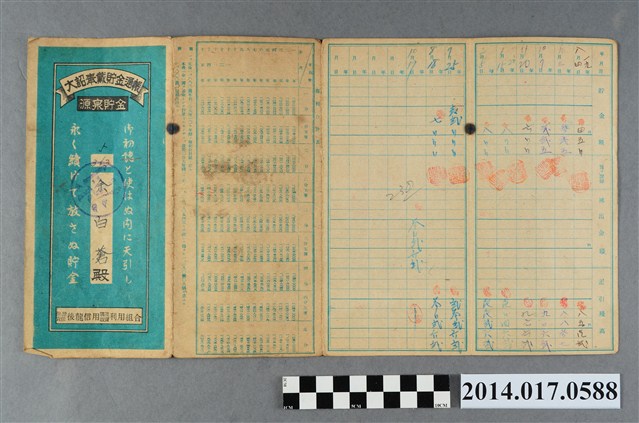 2014.017.0588 保證責任後龍信用購買販賣利用組合給余白蒼大詔奉戴儲金簿