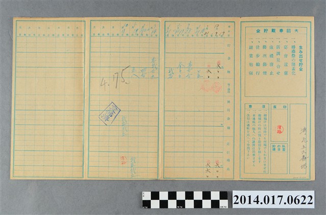 2014.017.0622 保證責任後龍信用購買販賣利用組合給陳路大詔奉戴儲金簿