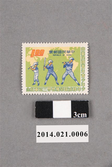 2014.021.0006 中華民國青年青少年少年棒球隊榮獲世界3冠軍紀念1圓郵票