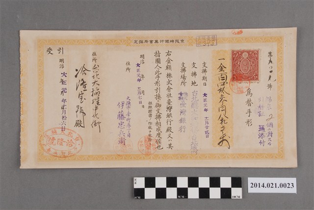 2014.021.0023 伊藤忠兵衛開給洽隆寶號143.87圓匯款票據