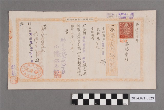 2014.021.0029 小幡松五郎開給洽隆大寶號匯款票據