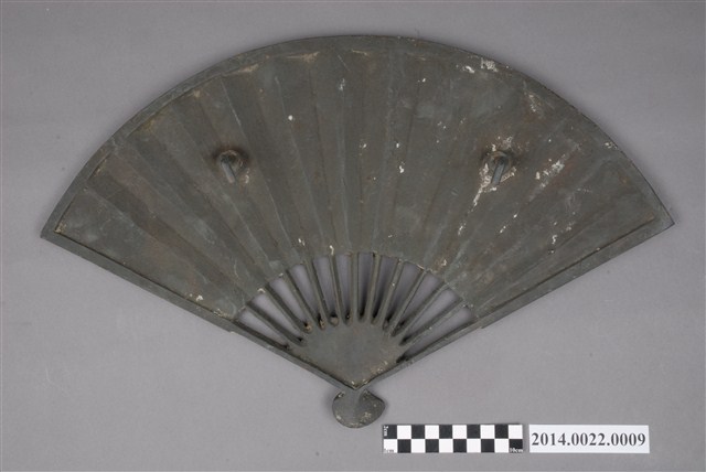3. 本件銅鑄扇型掛牌為林江松先生於戰後接手西村商會臺南支店保留之物,西村商會臺南支店原址位於林百貨斜對面,今中正路43號(原始建築僅存半棟,目前由伍中行公司出租給十全行),日治時期西村商會一樓為店鋪,二樓為支店長野坂新太郎的住家,三樓為職員宿舍。本件銅扇記牌原懸掛於三樓牆上,背面附有兩只掛勾,正面有浮雕日文。前半段鑄文文字大意為:『末廣町店鋪之興建係由多位志同道合的同志共同計畫建造,歷經5年辛酸,前仆後繼從最初170餘人,至今僅餘22人。政府與民間共同援助建造1連式27戶街屋,以鋼筋混泥土建造,經久耐用屹立不搖。工程進行大半以虔誠敬畏之心向神明祈求順利進行,並恭敬舉辦上樑儀式,期盼未來此建築將成為大臺南市新興的表徵,且子孫得以永久安居於此,特此記錄之。』鑄文中段標記上樑儀式奉祀之三位神明:岡象女神、大元尊神、五帝龍神。鑄文末段則詳細記錄動工日期為1931(昭和6)年8月30日,上樑日期為1932(昭和7)年8月24日,建築者為福井縣野坂新太郎,設計主任為 臺南州技師從一位梅澤捨次郎,工事監督主任為高橋貫一,工事請負人為田村作太郎,上樑者為白木幸七,上樑記牌之撰文者為臺南新報社主筆中村事,另委請臺南市末廣町原鋪建築連成會之祈內晴胤書法撰寫。