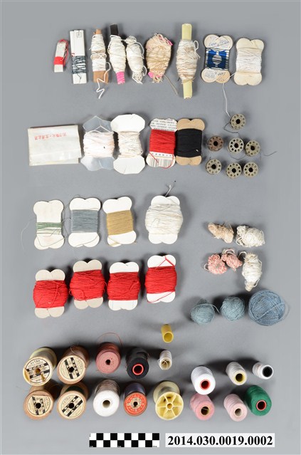 3. 本件另一特色為機身外表磨損十分嚴重,原應有之燙金裝飾圖紋、銅雕飾版因長期使用、磨損,以致器表圓滑金亮,反映出原所有者長期且大量使用磨損之狀態。縫紉機下方木抽屜保存吳錦雪生前使用的針線、拉鍊、鈕扣、線軸、碎布料等縫紉相關用具與耗材。