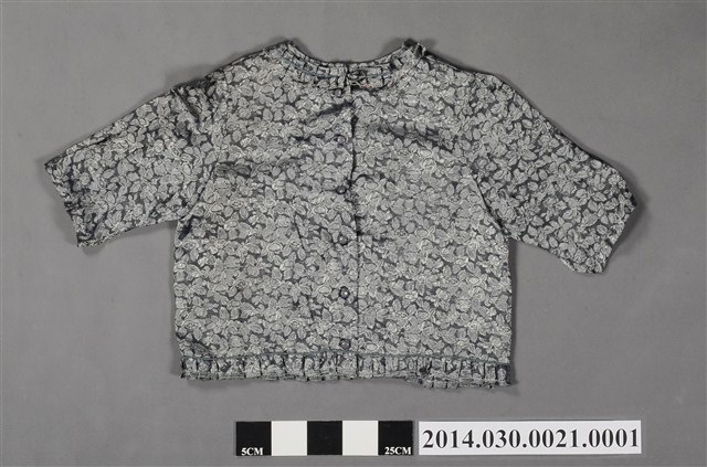 銀灰色緹花棉質圓領半袖罩衫式上衣。