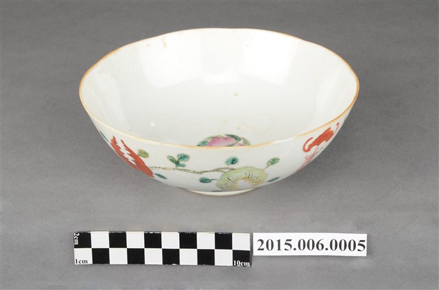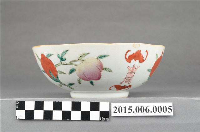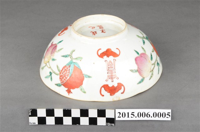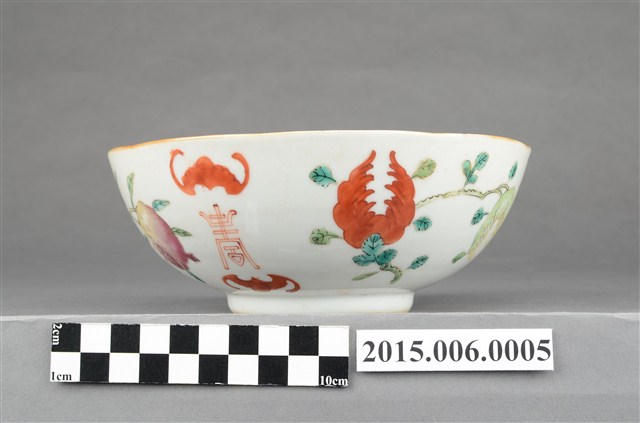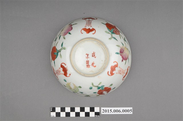 2015.006.0005 中國產晚清仿明成化瓷底款粉彩福壽雙全多子多孫湯碗