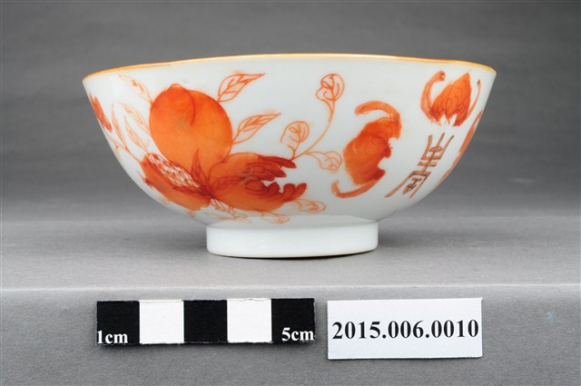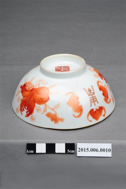 2015.006.0010 中國產清同治年製紅釉福壽雙全多子多孫碗