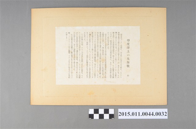 大東亞戰爭,是日本對第二次世界大戰時參戰遠東和太平洋戰場的戰爭總稱,涵括東亞、南洋的日中戰爭和太平洋戰爭。大東亞戰爭的目的,是為建立以日本為中心的「大東亞共榮圈」而與英國、美國等同盟國勢力爭奪殖民地的一場戰爭。大東亞戰爭的名稱是在1941年12月12日確定的,其意義為「為大東亞新秩序建設而進行的戰爭」。照片為發生於昭和17年4月印度洋上日軍與盟軍的海戰畫面。