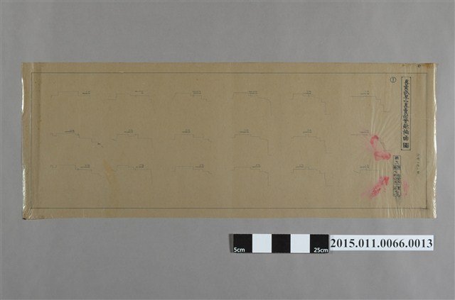 臺灣總督府專賣局全島各種設計圖原稿,本文件是專賣局草山專賣協會敷地橫斷面圖。