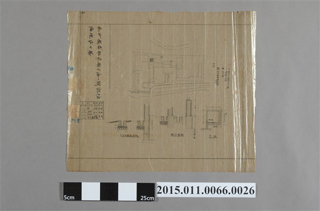 臺灣總督府專賣局全島各種設計圖原稿,本文件是宮前分工場井戶模樣替修繕工事設計圖。