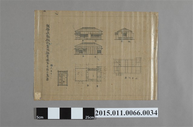 臺灣總督府專賣局全島各種設計圖原稿,本文件是坪林尾樟林作業所假事務室平面及建圖。