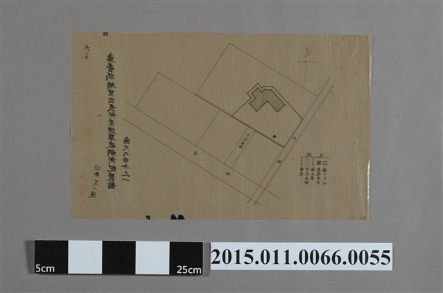 臺灣總督府專賣局全島各種設計圖原稿,本文件是專賣局埔里出張所葉煙草收納所配置圖。 台灣各地葉煙草收納場之設置根據,主要是依據台灣總督府專賣局於大正11年(1923年)所公布的〈葉煙草收納場建設其他こ関スル件〉、〈葉煙草收納場其他建設計畫〉相關內容而來,總督府專賣局囿於各菸區收購菸草時缺乏儲藏空間、設施,尤其中南部等地盛夏高溫、多雨,不僅讓執行菸草收購之人員深感痛苦,且對菸草之保存、後送回專賣局各支局更是一大考驗,故台灣總督府專賣局在各菸草種植區域中,選定與各菸田與菸農住家距離較適切位置之基地來興建收