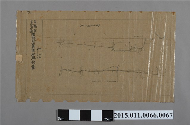臺灣總督府專賣局全島各種設計圖原稿,本文件是王爺港虎尾寮間特設電話架設線路圖。