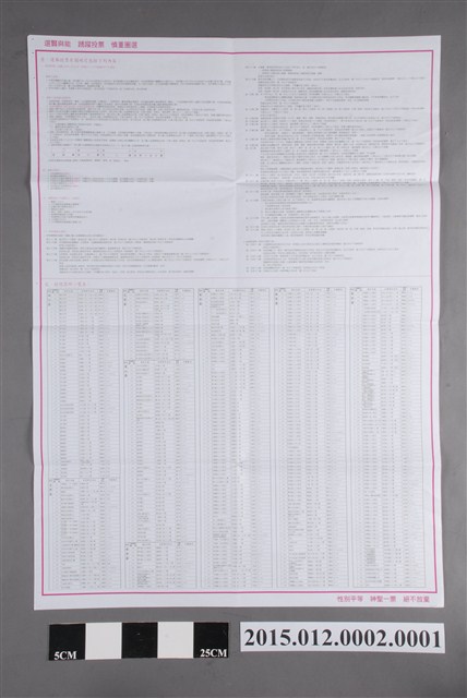 本件為新北市選舉委員會編印,新北市議會選舉第2選舉區(林口區、五股區、泰山區、新莊區)選舉公報,採雙面列印並以戶為單位發送給選區內的選民參考,正面為1號至7號候選人之簡介與政見,背面載有投票時間、注意事項、投(開)票所資訊相關規定。