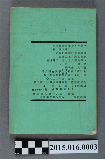 書封寫有:中華青.少棒世界揚名記(附怎樣學習打棒球暨規則)、一九七八最新增編,書背寫有:中華青.少棒世界揚名記 姚立業編、怎樣學習打棒球附規則 簡永昌譯 姚立業編。