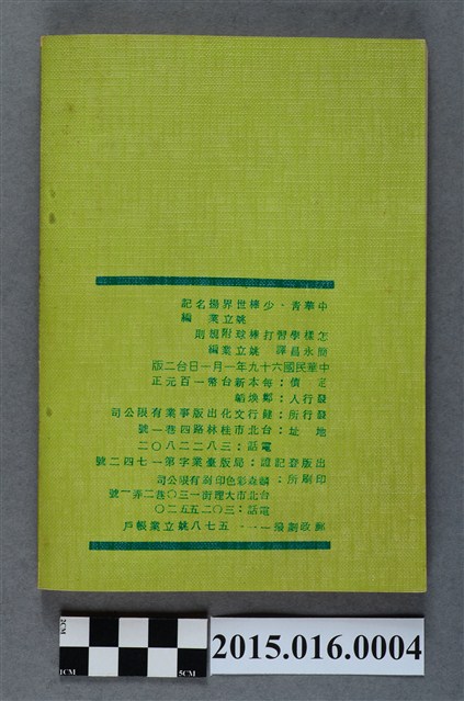 書封寫有:中華青.少棒世界揚名記(附怎樣學習打棒球暨規則)、中華民國六十九年一月一日台二版、最新增編,書背寫有:中華青.少棒世界揚名記 姚立業編、怎樣學習打棒球附規則 簡永昌譯 姚立業編。