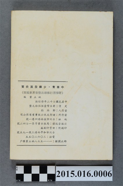2015.016.0006 中華青.少棒發展史實(附學習打棒球法暨世界新規則)1983年版本