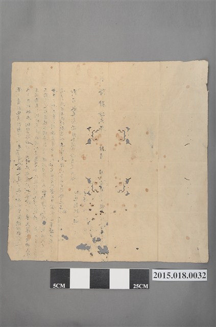 本契約為乾隆42年4月李世助將承祖父遺下位於埔心社前的水田壹所,售地予黃家,金額370圓,屬於較高的金額,應與土地屬於開發完成的水田性質有關。左方並有註記小字,係註明之後的交易情況。契約多處蟲註。