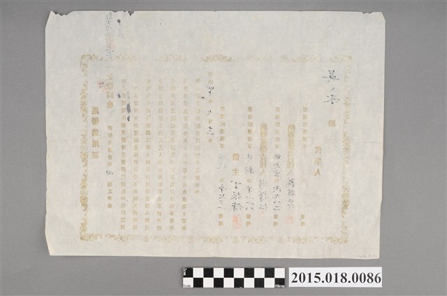 明治41年9月,鄭登才等人給吳永之連帶借用證,以貯金講會金鄭登才借六圓,依照日本時代制式表格填寫,設有三位納務連帶責任人。
