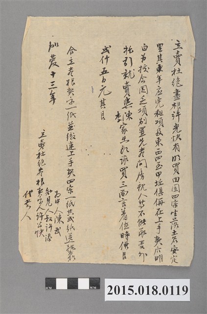 2015.018.0119 嘉慶13年許光快賣與陳家李家立賣杜絕盡根