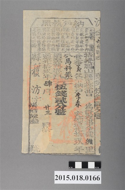 2015.018.0166 道光19年4月維新里鳳山縣給李春納戶執照