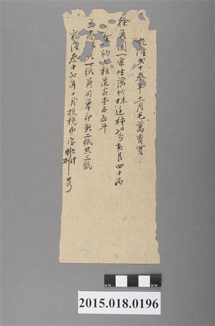 2015.018.0196 乾隆23年11月新化里竹林邊社毛萬青田業宗卷買賣摘要浮籤