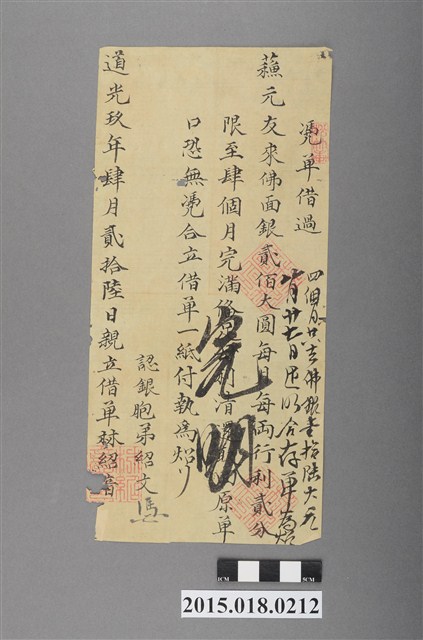 2015.018.0212 道光9年4月林紹音親立借單