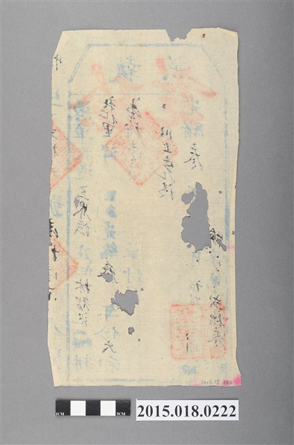光緒三年業主蔡慎記發給林智記繳納新化里的佃租完單執照。