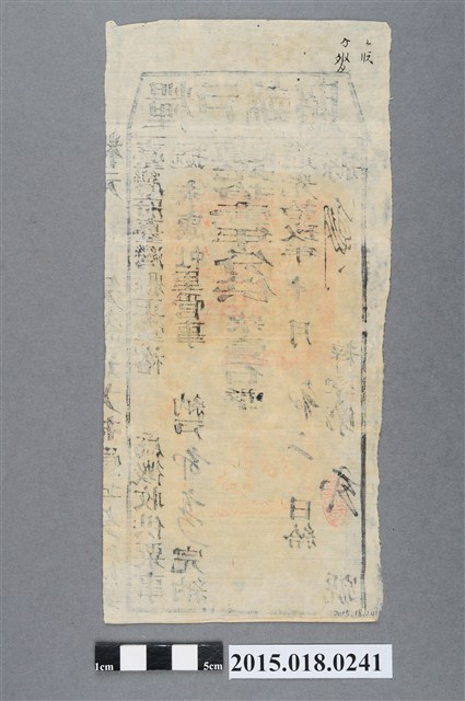 臺灣府臺灣縣徵收粟事,由永康上中里管事請納戶郭亮繳納,完繳後發給本單以做憑證。