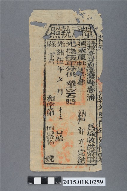 2015.018.0259 光緒5年7月臺灣縣給郭亨糧戶執照