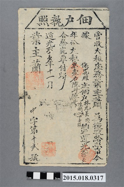 2015.018.0317 道光21年11月業主蕭新給林元美佃戶執照