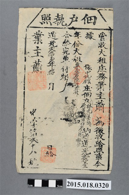 2015.018.0320 道光21年10月業主蕭新給林元美佃戶執照