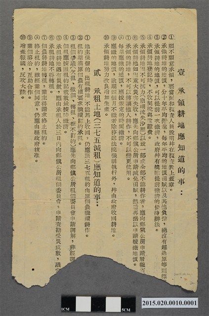 後列耕地準定3月19日上午11時起實施複查,希準時攜帶有關文件到達耕地所在地眼同複查,倘不準時到場或攜帶文件不全者以放棄承領耕地論,自行負責。