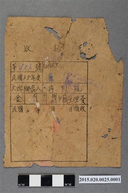 2015.020.0025.0001 大埤鄉民國35年度特別稅歲入收據