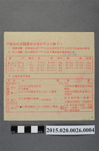 大埤鄉公所給唐文民國41年2期份戶稅繳納收據