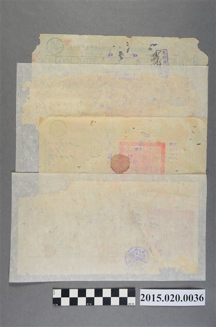 民國42年7月31日~民國45年8月9日承領農戶唐文臺灣省放領耕地現金地價繳納聯單收據。