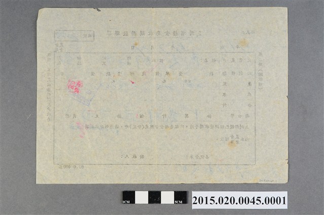 民國67年7月27日農戶唐文出售稻穀給糧食局後收執的臺灣省糧食局收購稻穀聯單。