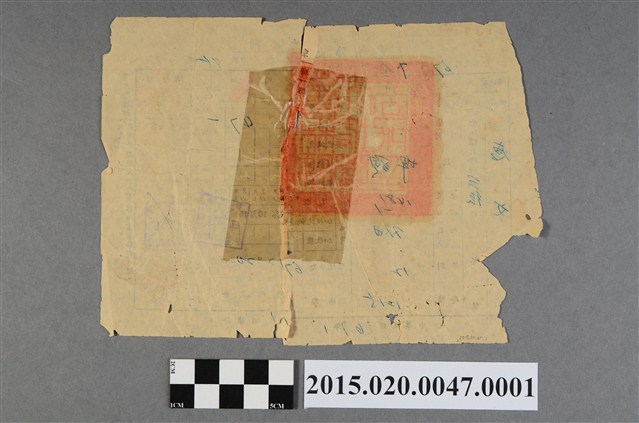 民國67年12月14日雲林縣大埤鄉公所發給承租人唐文,民國67年下期公有土地繳納稻穀地租聯單。本期租額為47公斤。