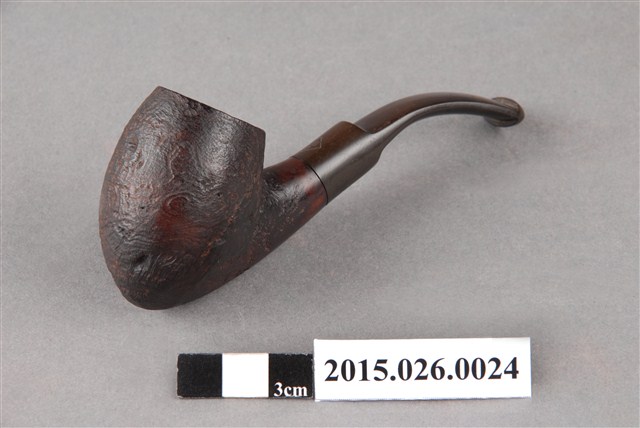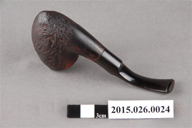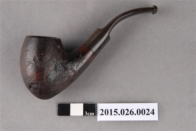 本件為「臺灣攝影獨行俠」黃則修先生(1930-2014)所使用過之煙斗,使用年代不詳。就造型上屬彎式煙斗(Bent Pipe)。煙斗分斗身、斗莖兩個部分:斗身以黑褐色木塊雕刻而成,斗碗為尖底,器表帶有木質縱向粗糙紋理,煙斗內壁有燒灼黑漬,斗柄彎曲角度近45度,上方近內彎處有一三角形「BBB」標誌,此為英國著名煙斗品牌BBB,創立於1847年,以生產石楠木煙斗著稱,為早期台灣進口煙斗品牌。煙斗斗莖呈扁平狀,黑色塑膠材質。