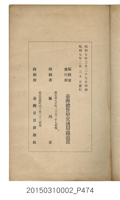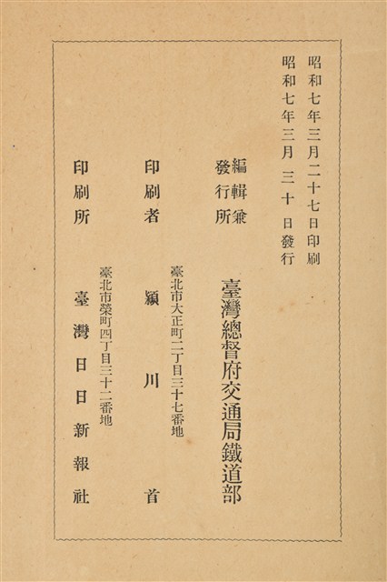 臺灣總督府交通局鐵道部發行《臺灣鐵道旅行案內》昭和7年版