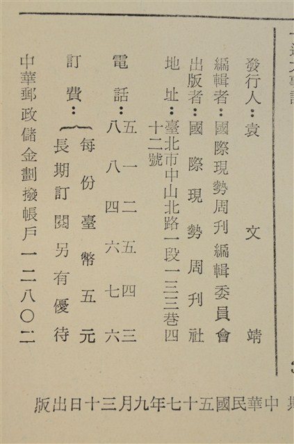 2015.033.0007 國際現勢周刊社出版《國際現勢周刊》第656期