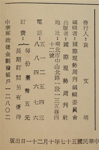 國際現勢周刊社出版《國際現勢周刊》第659期