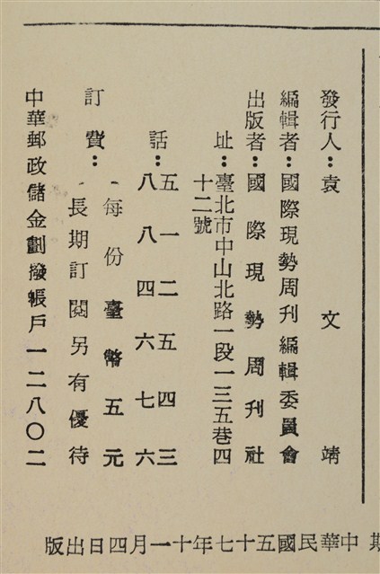 2015.033.0012 國際現勢周刊社出版《國際現勢周刊》第661期
