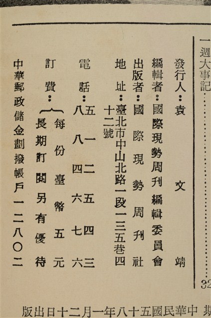 2015.033.0023 國際現勢周刊社出版《國際現勢周刊》第672期