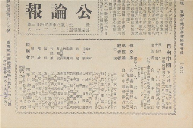 (一)反對黨問題 社論 本刊