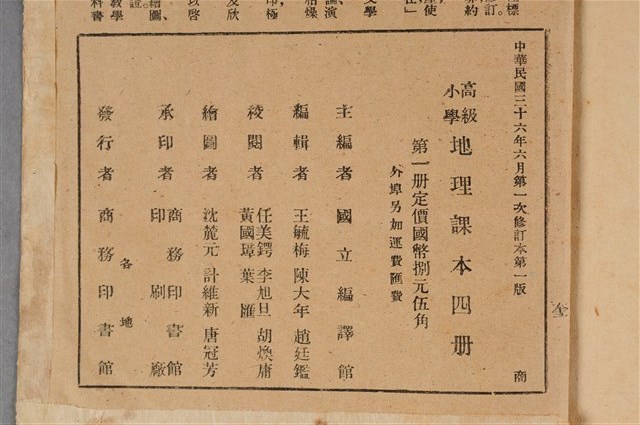 國立編譯館主編《高級小學地理課本第1冊》