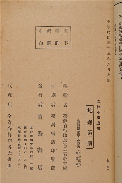 國立編譯館主編《高級小學地理第3冊》