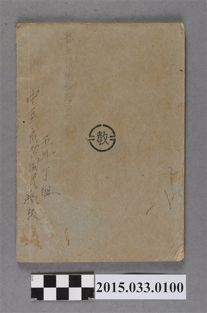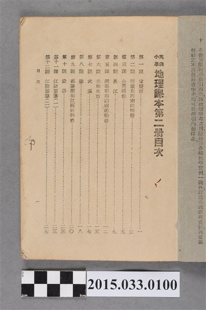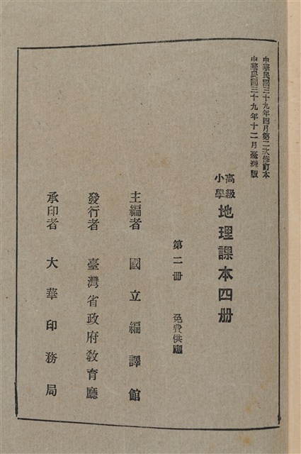 本版內容有第1課重慶市到12課江防要塞(二)封底有五年丁組中區國民學校手寫字樣(陳亭靜撰文,陳怡宏校正)