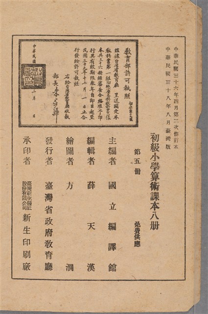 國立編譯館主編《初級小學算術課本第5冊》
