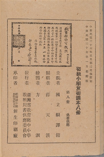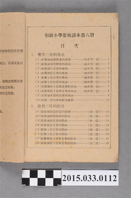 2015.033.0112 國立編譯館主編《初級小學算術課本第8冊》